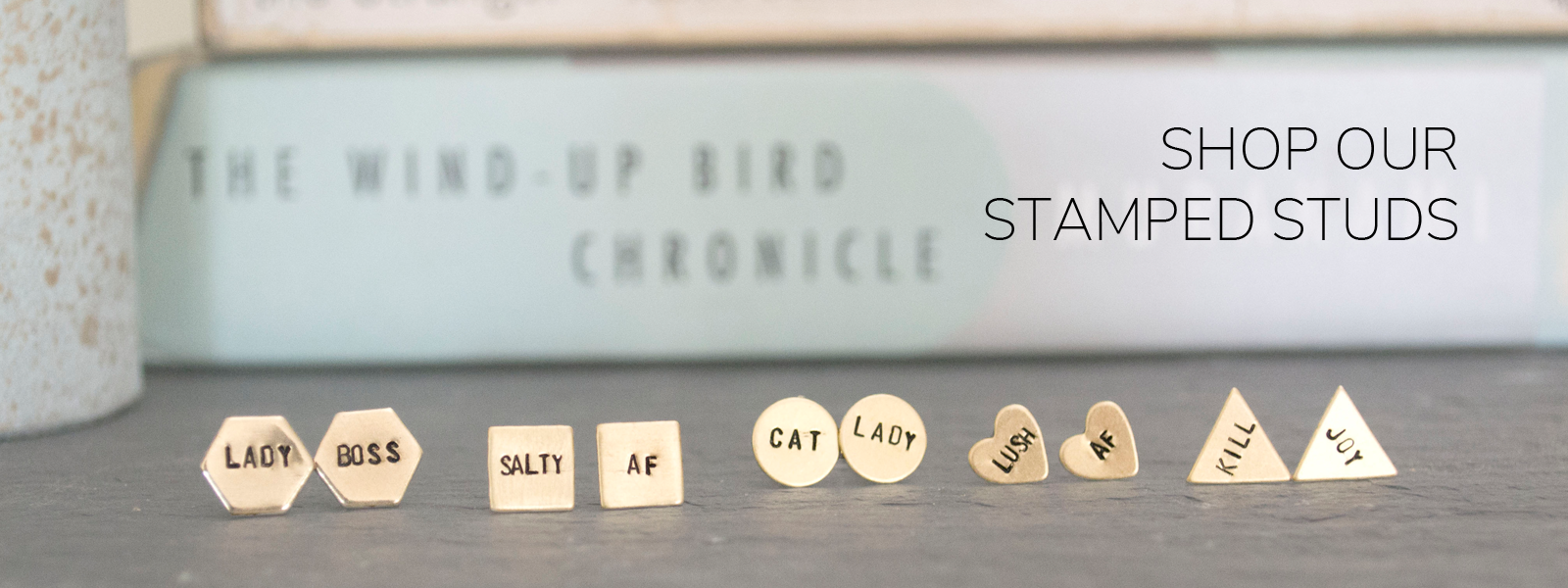 Hand Stamped, square shaped, brass earrings that read "SHIT FUCK" because let's face it, you...